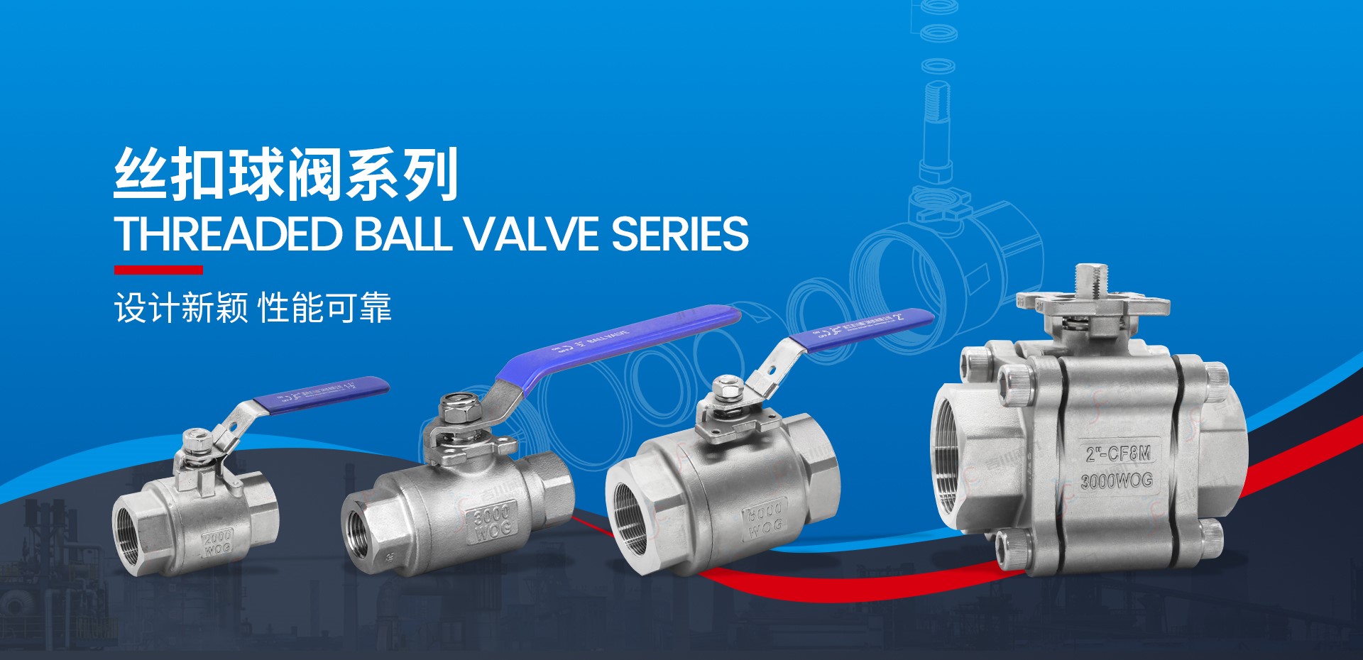 我們的主導產品有高平臺法蘭球閥、手動球閥、絲扣高平臺球閥、手動絲扣球閥、閘閥、截止閥、止回閥、過濾器、氣電動自控閥門以及工程管道配套閥門等。